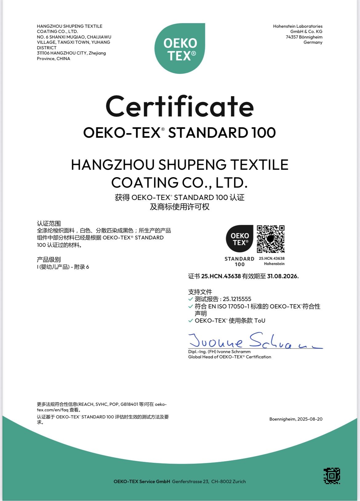 Above is our certificate of OEKO-TEX STANDARD 100.
